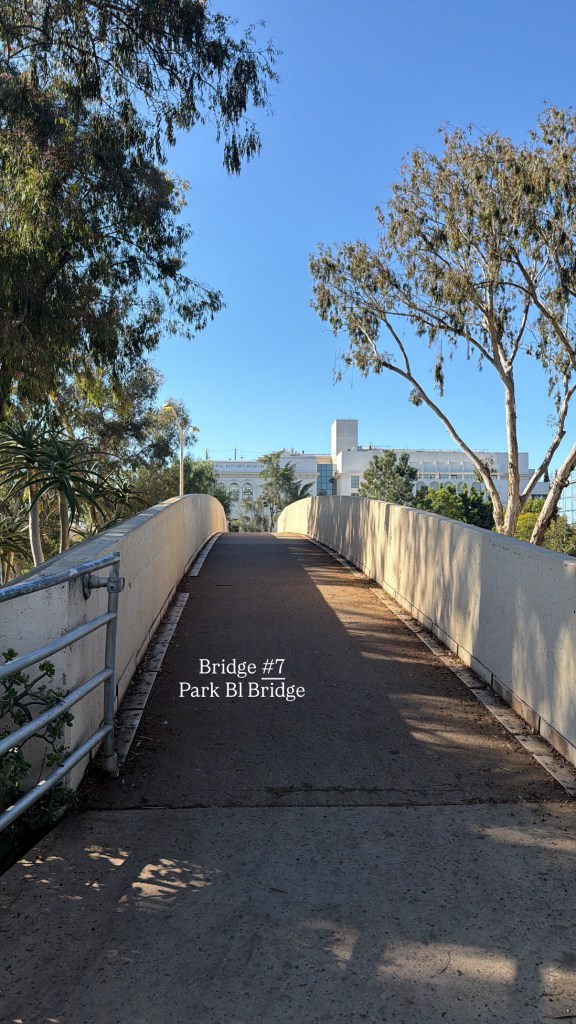Your final bridge brings you back into Balboa Park over Park Boulevard.