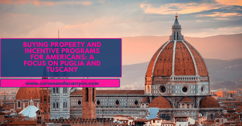 If you’re looking to move to Italy, two standout regions to consider are Puglia (Apulia) and Tuscany (Toscana). Both regions offer beautiful landscapes, unique lifestyles, and great investment potential for property buyers. Additionally, Italy has several incentive programs that make buying property attractive, especially for Americans looking to settle or invest.